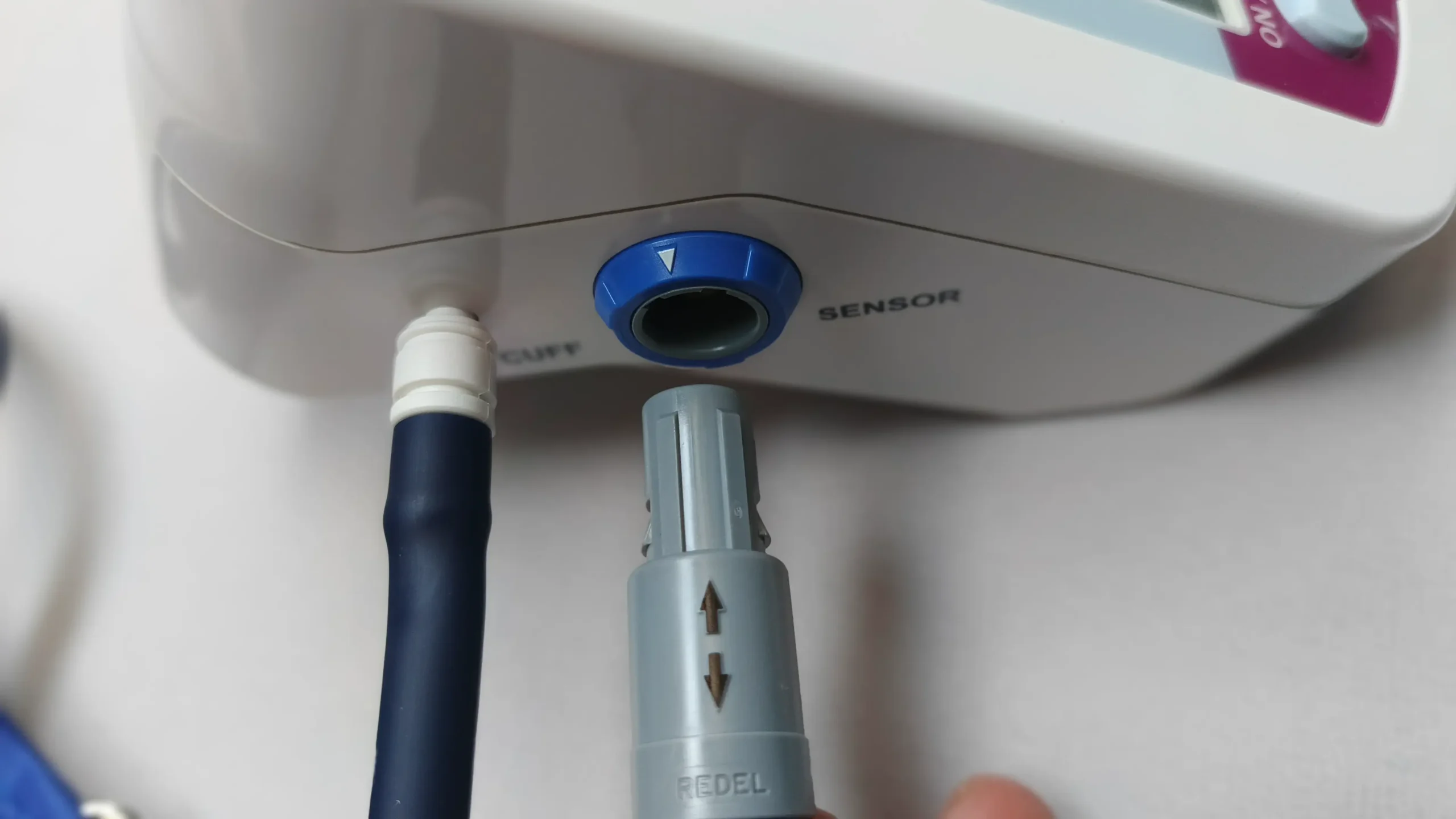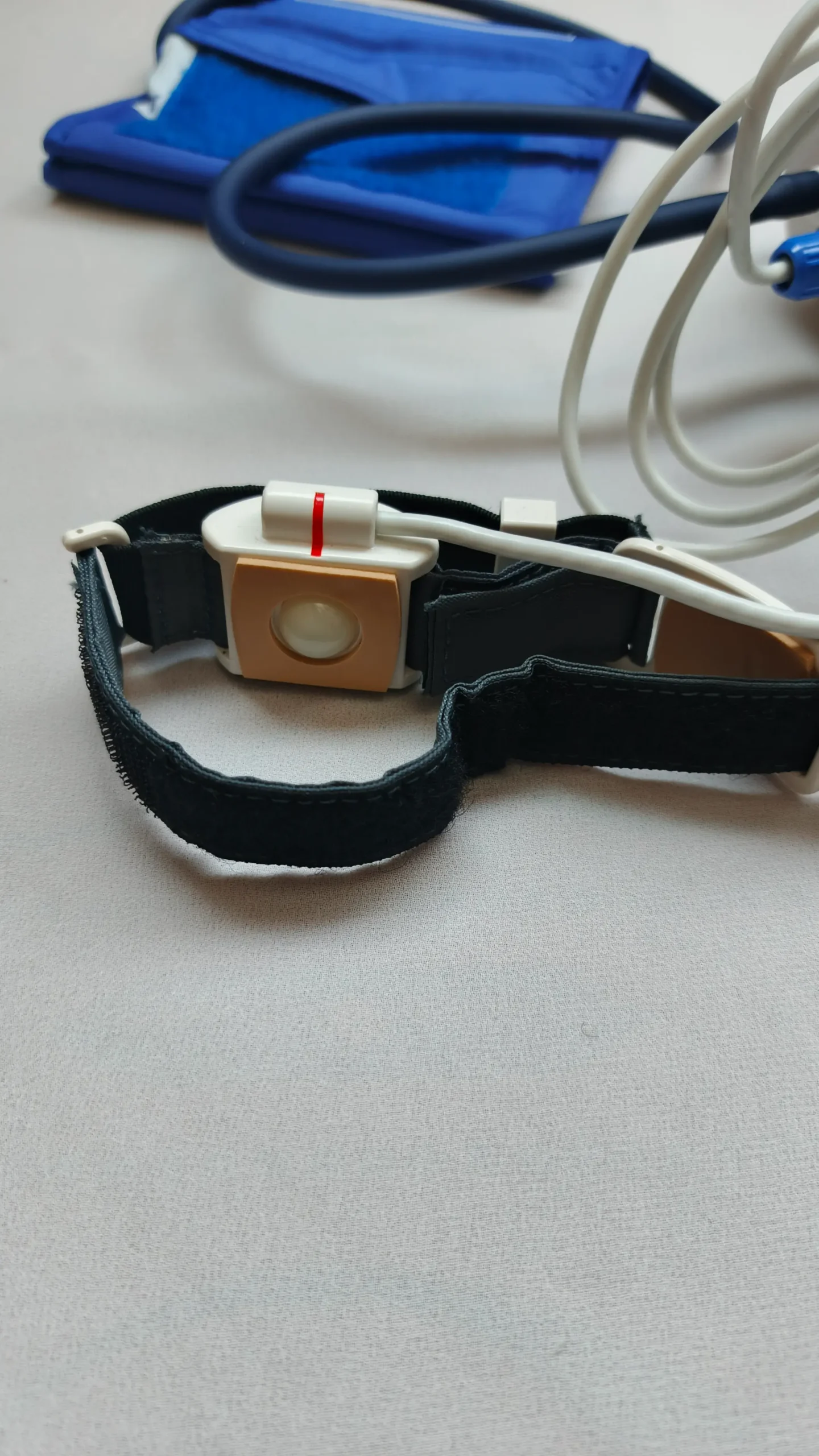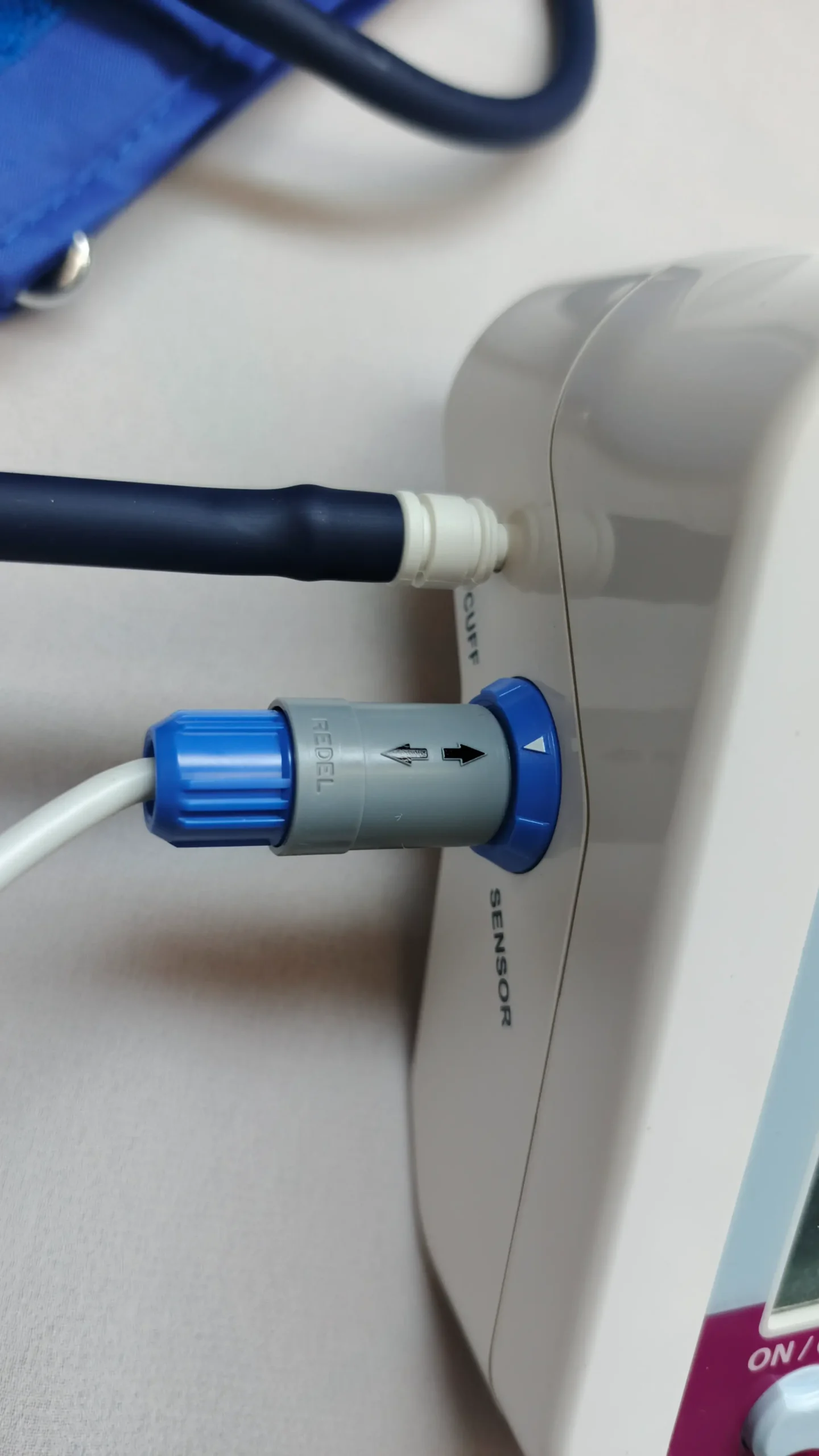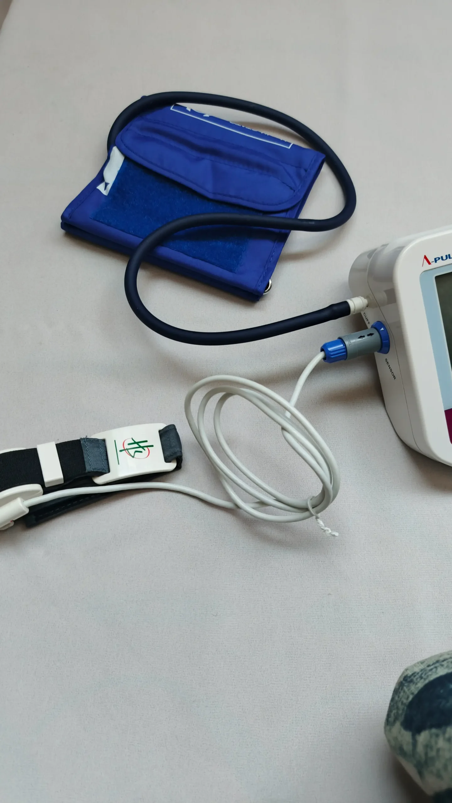 The cuff is soft and adjustable, fitting most adult arm sizes comfortably. It does not hurt the arm and provides proper grip for correct readings. The sensor cable and cuff connection are strong and durable.
