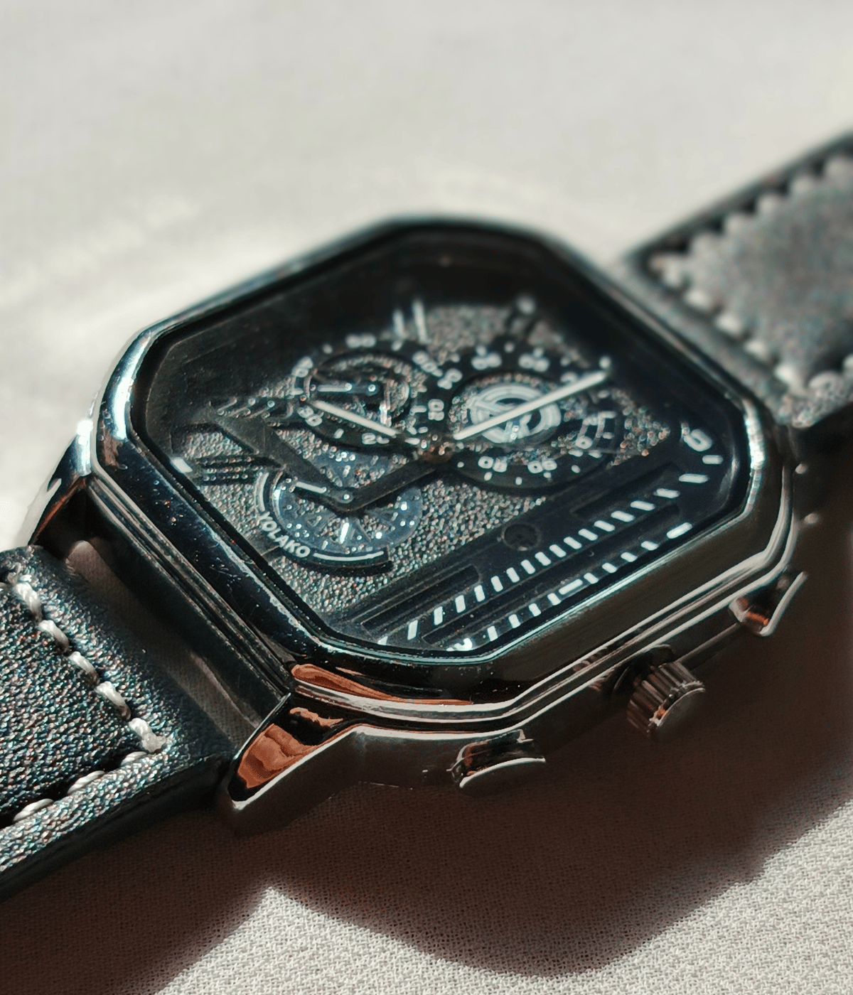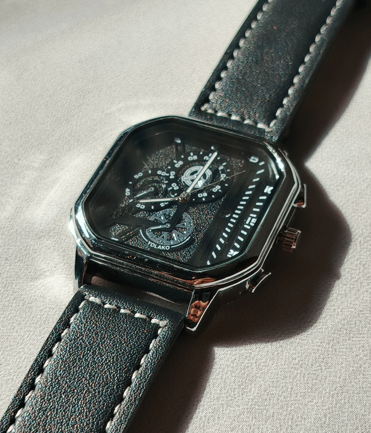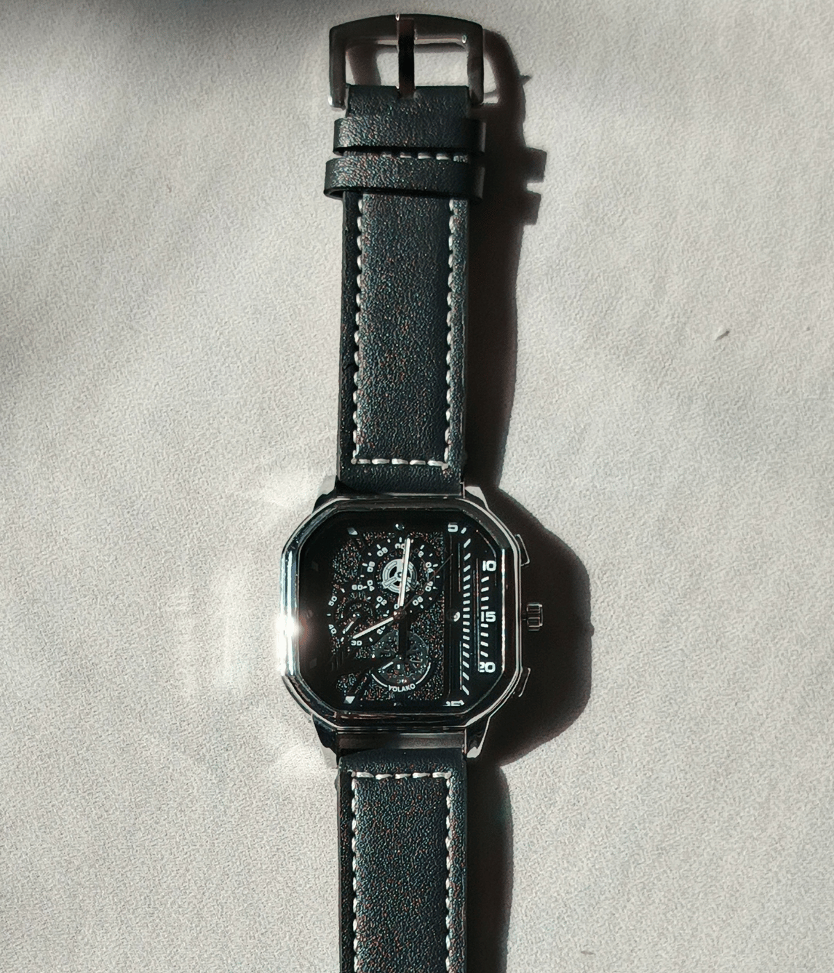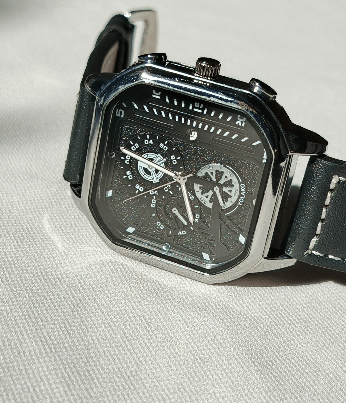 The square dial design gives a premium and bold appearance on the wrist. Inside the dial, you will see detailed sub-dials that add a luxury touch, making the watch look more expensive than its actual price. The clear markings and smooth hands make time reading easy, even at night or in indoor light.