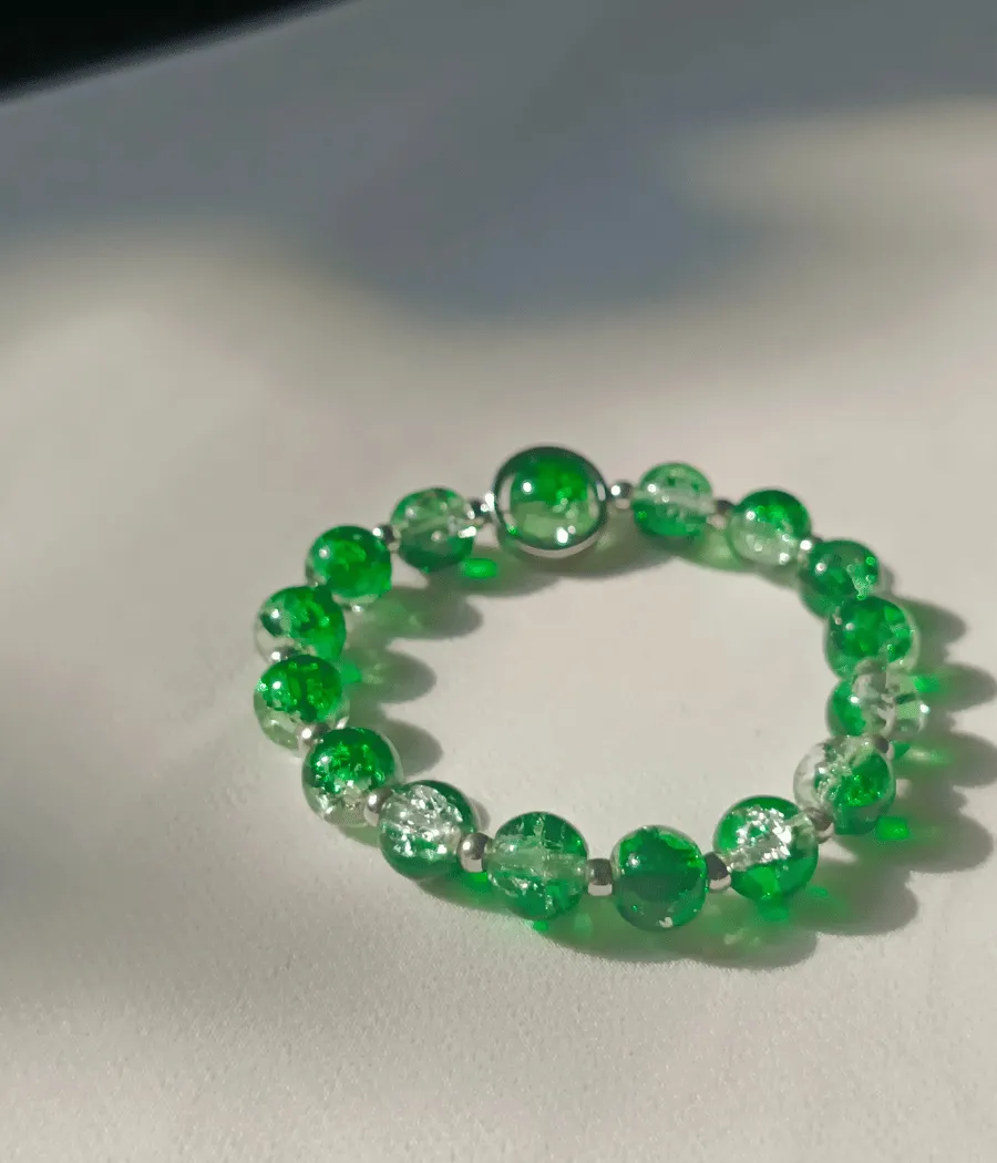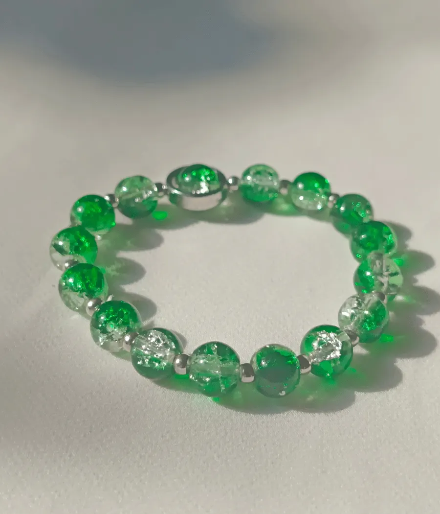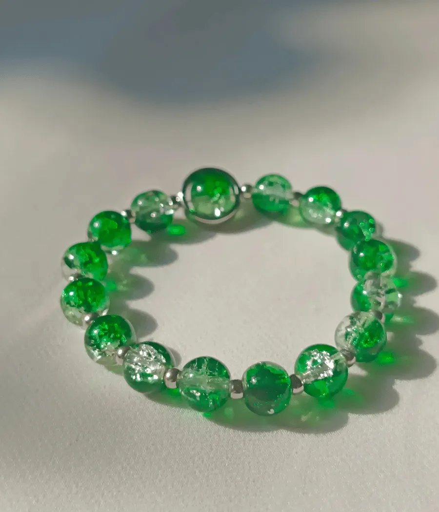 Design: Features high-quality, 8mm green crackle glass beads that catch the light with a unique shattered-crystal effect.